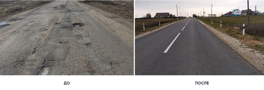 Проведение работ по технологии холодной регенерации поспособствовало выполнению качественного ремонта дороги с экономией по сметной стоимости. Сократился объем работ по демонтажу и утилизации существующего покрытия дорожной одежды и закупке инертных материалов, движение по дороге было ограничено частично и не перекрыто на всю ширину. Качество работ полностью устроило заказчика и подрядчика, а также соответствовало требованиям нацпроекта «Безопасные качественные дороги» в регионе.
